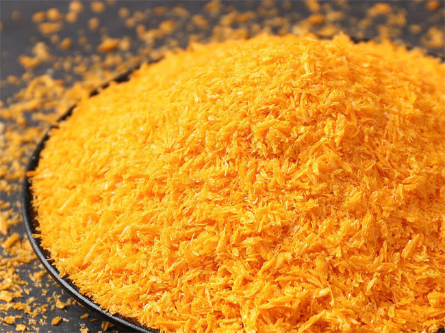 面包糠:由干面包研磨而成的颗粒状粉末,分粗、细两种。粗糠颗粒感强,炸后呈酥脆的“鳞片”效果;细糠更细腻,适合包裹小型食材。它的核心作用是增加外壳的颗粒脆感,视觉上更有“食欲感”。